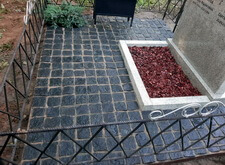 По нашему совету в одном из углов места захоронения клиент согласился сделать небольшую клумбу, куда в последствии предполагается посадить можжевельник.