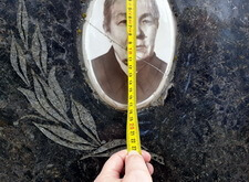 Первым делом мы замерили круглые портреты покойных на керамике. Старые пора было заменить, а новые предполагалось установить на то же самое надгробье, поэтому овалы должны быть идентичны предыдущим.